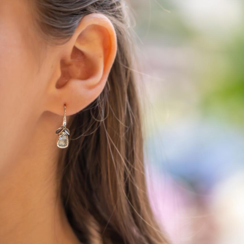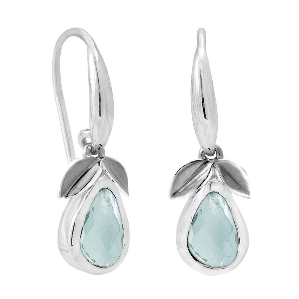 Deze sterling zilveren oorbellen hebben elk een 7 x 4,5 mm blauwe topaas.